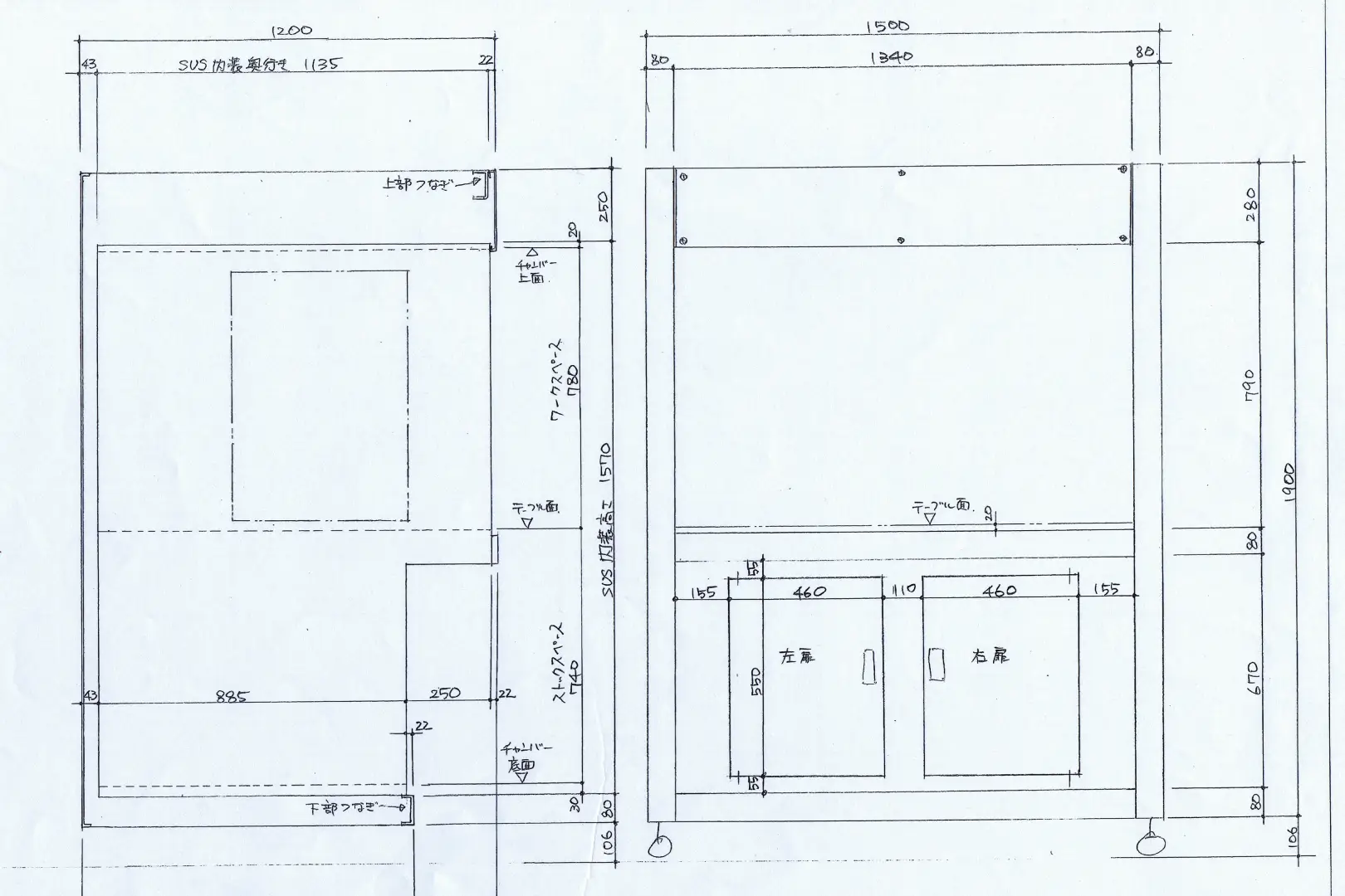 機構や構造体の設計にも強く、「こういう製品を作りたい」というイメージスケッチがあれば、そこから弊社の技術に基づいて、適正な材料の選択や最適工法の選択をしたり、仕上げ方法の見直しなどの提案をしたりと、構造や製造方法・機構などを考えた上で設計していきます。また、現物から採寸し、図面を起こして製造することも可能です。